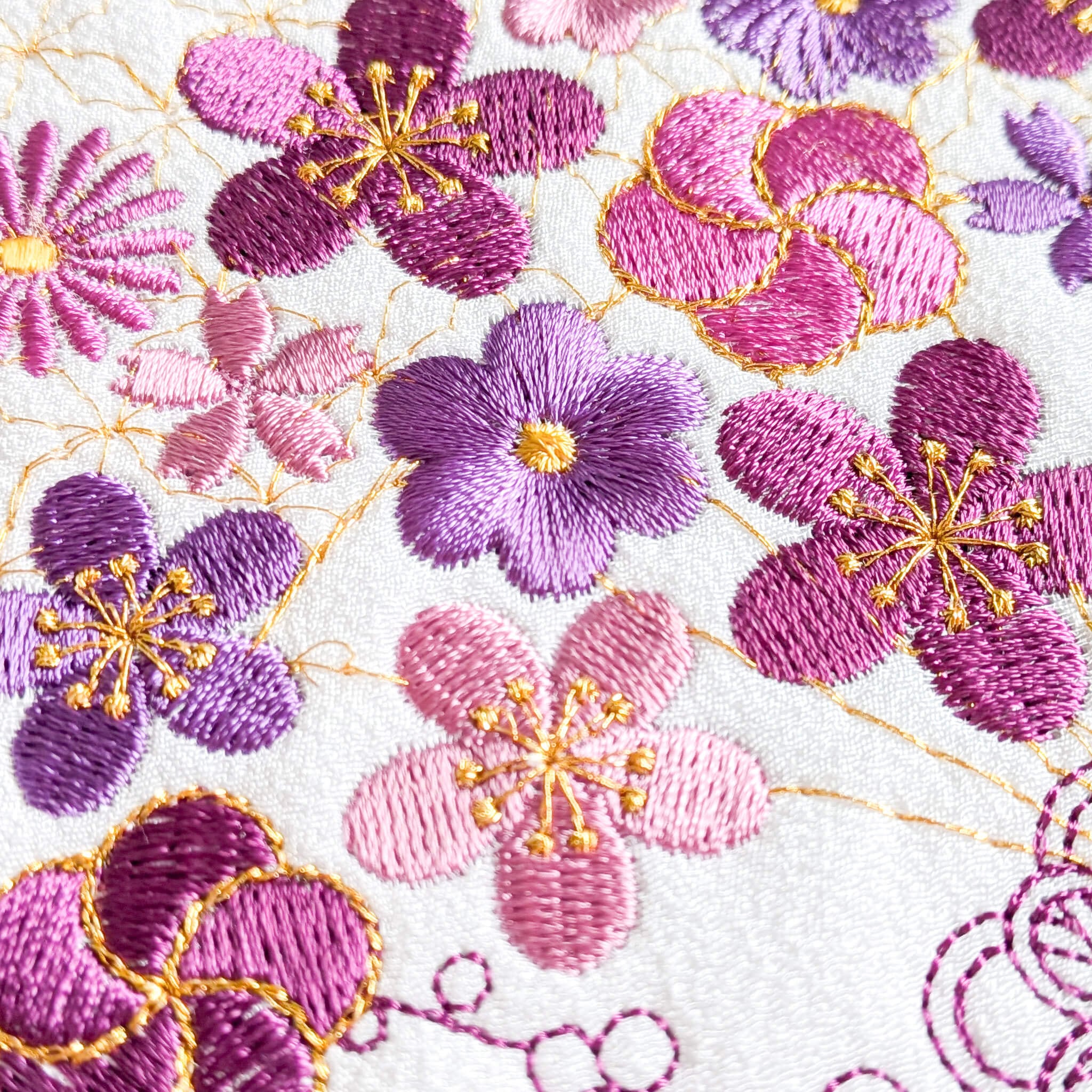 刺繍の魅力のひとつは糸のぷっくり感と上品な光沢。